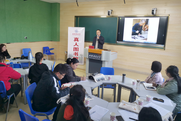 专业教师书法作品展”等经历,将自己的成长故事娓娓道来。通过小事情传授大道理,与读者零距离的交流更容易感受到“听别人的故事,感悟自己的人生”的真谛。薛珠峰还就读者提出的“如何理解字如其人”等问题与在场的大学生做了深度的交流和探讨。最后在活动结束之时勉励读者:“一是无论生活中遇到什么困难、挫折,我们都要坚定自己的目标,坚持不懈的努力;二是勇于奋斗,争做时代的新人。”启迪“读者”更加宽广的人生之路。