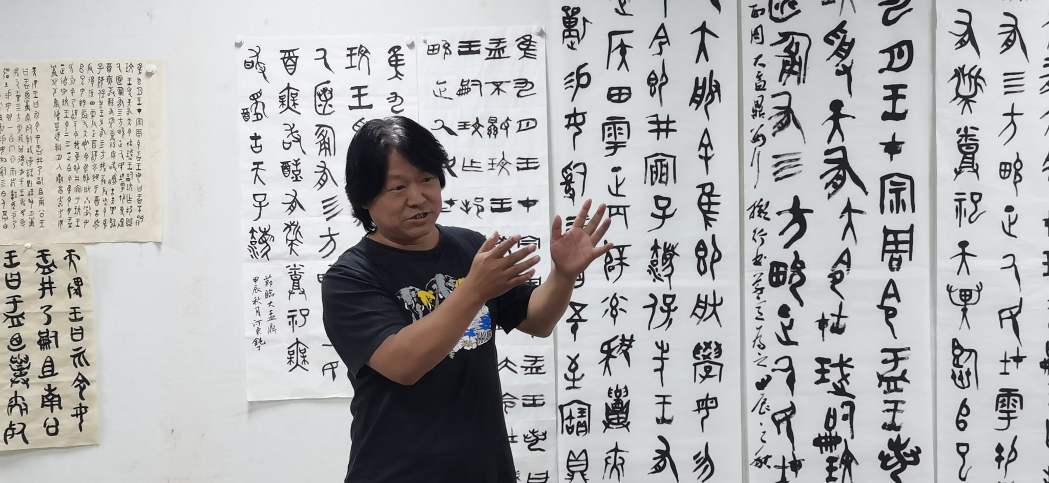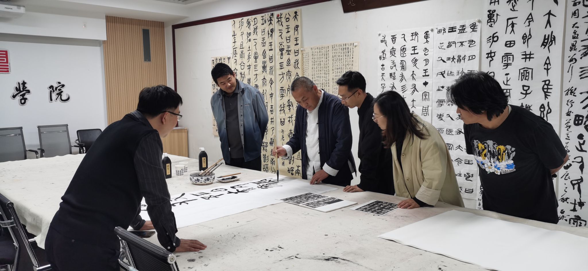 随后,曹亚彬、黄玉岩、杨二斌等老师分别介绍了个人意临西周金文《大盂鼎》的心得,他们从不同角度分享了自己的临摹感悟、技法上的突破以及对作品精神内涵的理解,为其他老师提供了宝贵的经验和启示。在分享心得之后,老师们纷纷就意临《大盂鼎》过程中遇到的技法问题进行交流和研讨。大家相互切磋、共同提高,氛围热烈而紧张。为了更直观地展示技法成果,老师们还进行了现场书写交流,演绎出各具特色的《大盂鼎》风格作品,在交流探讨中汲取创作灵感。