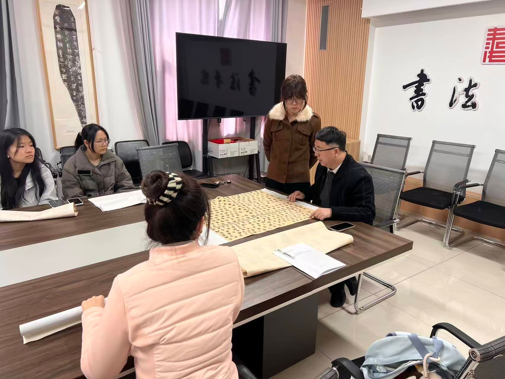 此次交流活动,不仅让同学们明确了具体学习任务与精进方向,更在学习态度与审美追求上形成清晰认知。大家深刻意识到,书法学习不能止步于技法模仿,更需以敬畏之心深耕传统,以专注之态打磨细节,唯有将严谨态度贯穿临帖创作始终,将经典审美内化为自觉追求,方能在艺术道路上行稳致远,逐步形成兼具功力与个人风貌。(图/文:戚恬静)