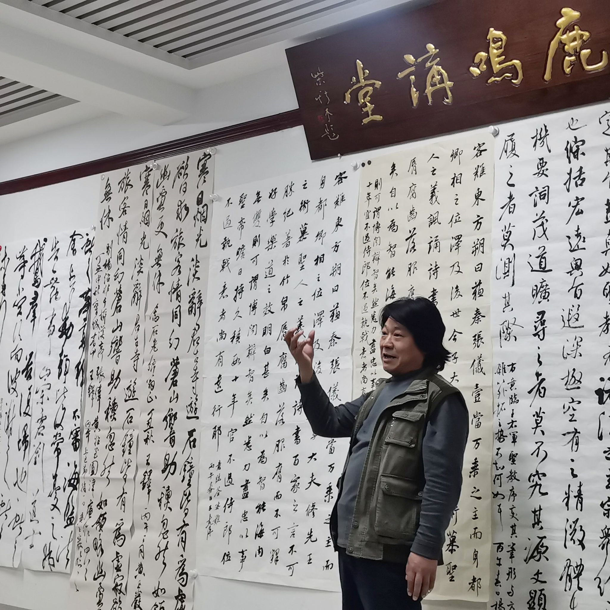 活动伊始,参与教师依次展示近期完成的行书实临与意临作品,结合个人临帖积累与意临创作思路,从笔法的精微变化、字形的欹正构造、章法的虚实排布、墨法的枯湿层次等维度,逐一分享研习行书经典的思考与实践心得,充分展现了教师群体对传统经典的多元解读与个性化探索。王建魁对每件作品逐一点评,既充分肯定了教师们在临帖过程中对传统技法的扎实传承,也针对性指出了部分作品存在的法度偏差、意临脱离原帖内核等问题,重点围绕每位教师的“临用转换”意识提出改进建议,特别强调落款是作品章法的有机组成部分,需提前规划落款内容、形制与位置,确保与正文内容、书风及整体章法和谐统一,避免因细节疏漏影响作品完整度。随后,黄玉岩、王文清先后结合自身创作与教学经验,对大家作品的临帖精度、创新思路展开补充评议,为在场教师提供了多元化的审视视角。