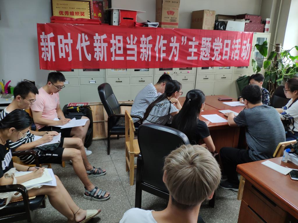 教工党支部、学生党支部在10410办公室举办了“新时代新担当新作为”主题党日活动。活动由学生党支部书记宁译锐主持,教工党支部、学生党支部全体党员参加了此次主题党日活动。