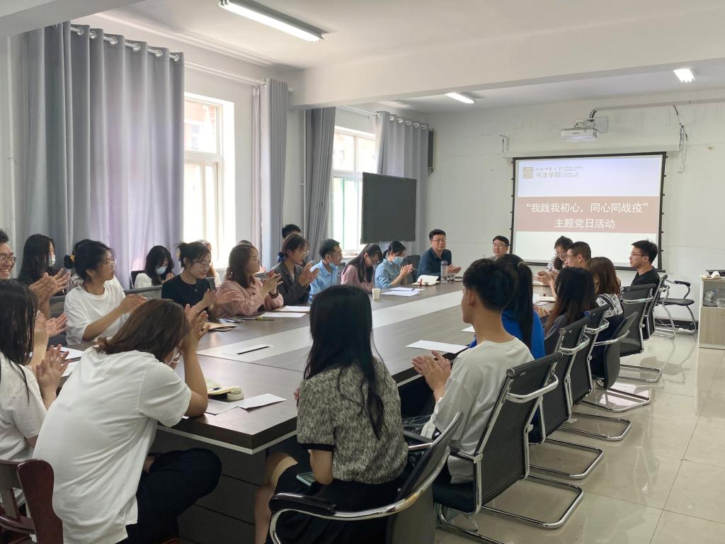 党总支在8号教学楼8301会议室举办了“我践我初心,同心同战疫”主题党日活动,我院翰墨传薪党支部、传薪翰墨党支部全体师生党员参加了此次活动。