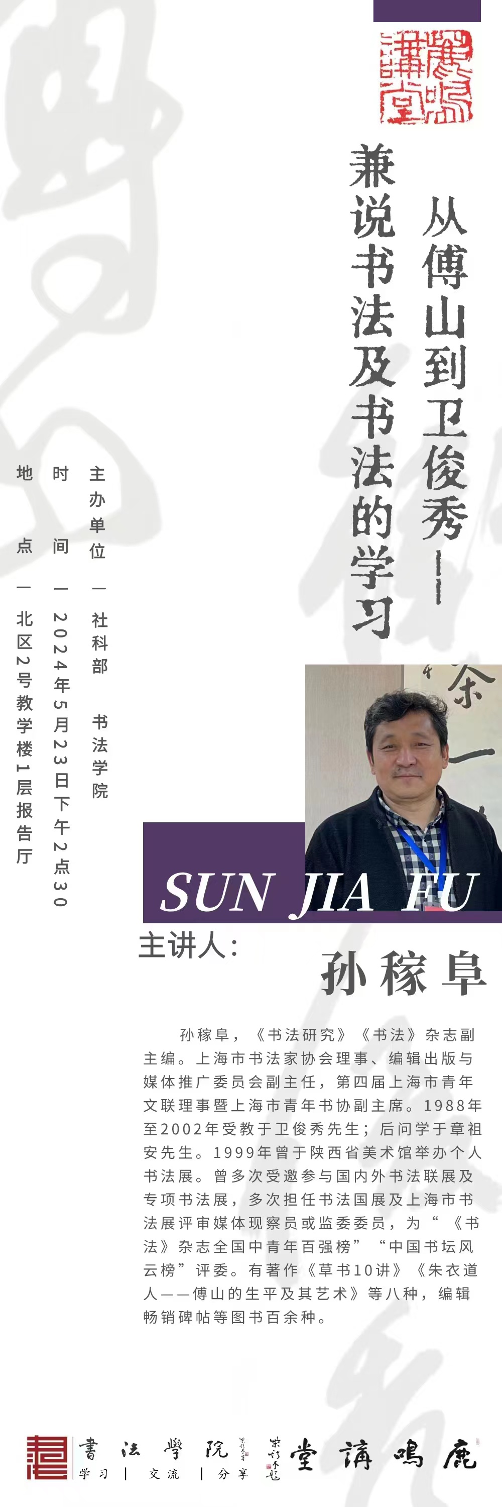 【讲座预告】孙稼阜:从傅山到卫俊秀——兼说书法及书法的学习