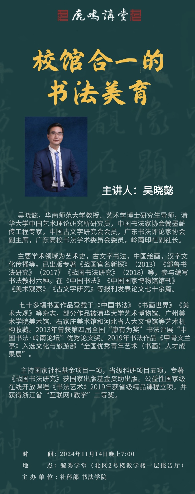 【讲座预告】吴晓懿:校馆合一的书法美育