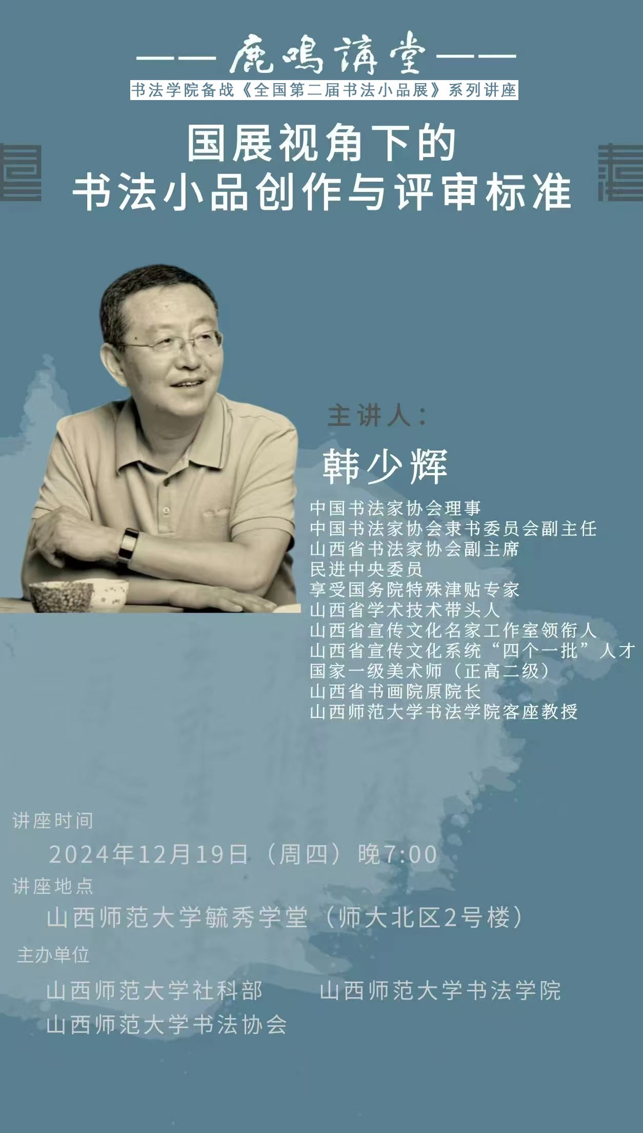 【讲座预告】韩少辉 : 国展视角下的书法小品创作与评审标准