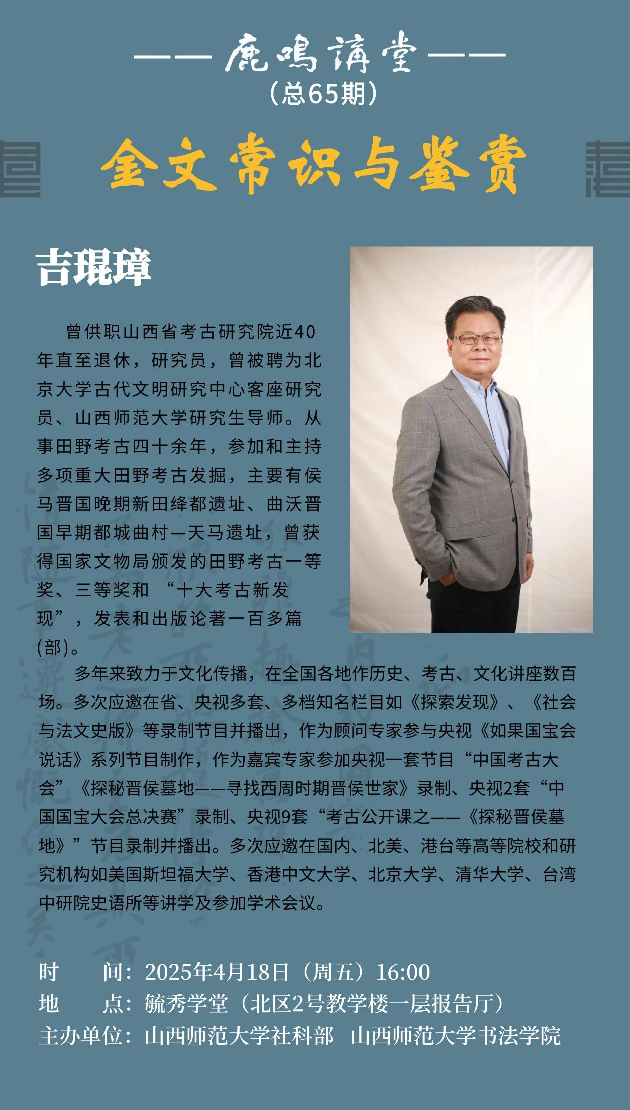 【讲座预告】吉琨璋:金文常识与鉴赏