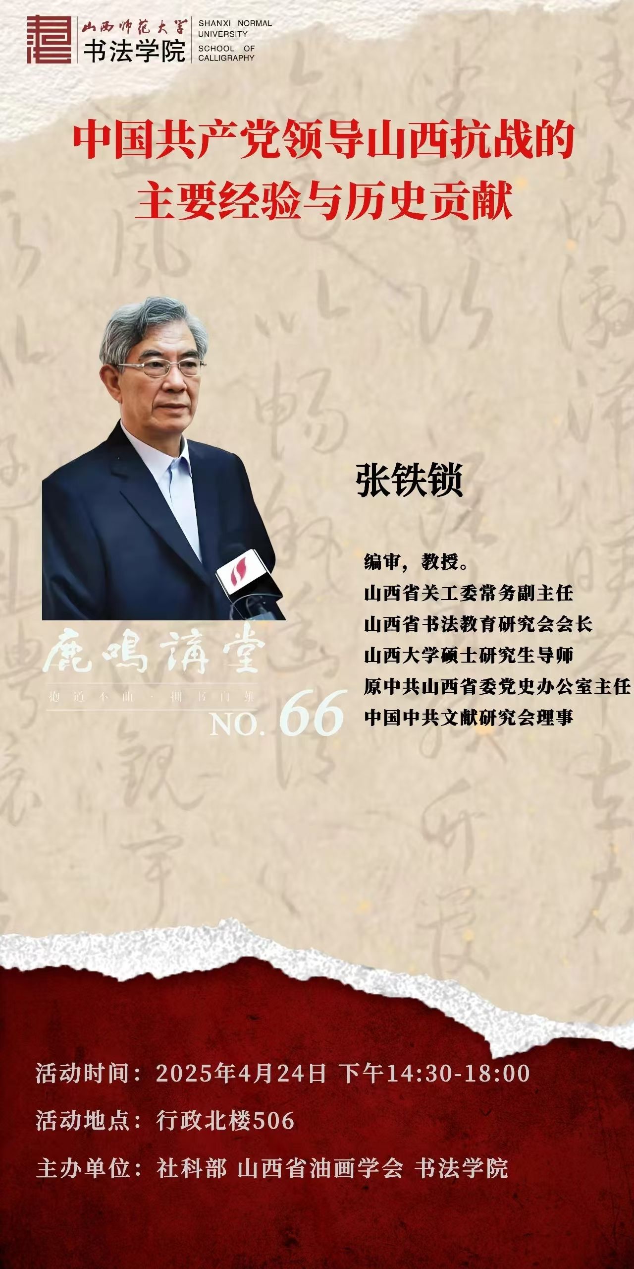 【讲座预告】张铁锁:中国共产党领导山西抗战的主要经验与历史贡献