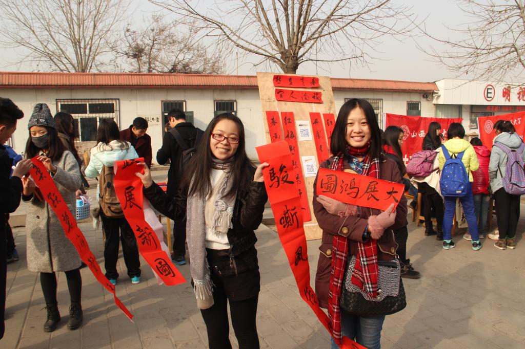 的60余名学生自筹经费发起,共计为师生们赠送了500余幅春联。活动的开展不但发挥了蜜桃堂