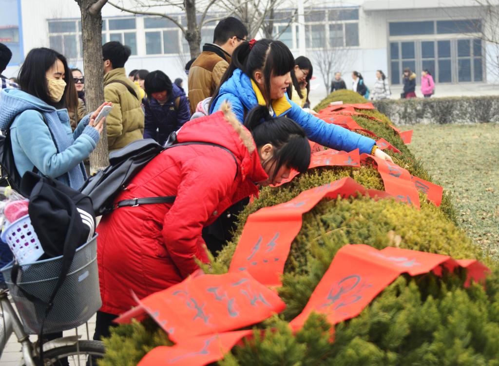 的同学们在校园西侧通道上开展了以“迎新年送春联”为主题的新年赠春联活动。
