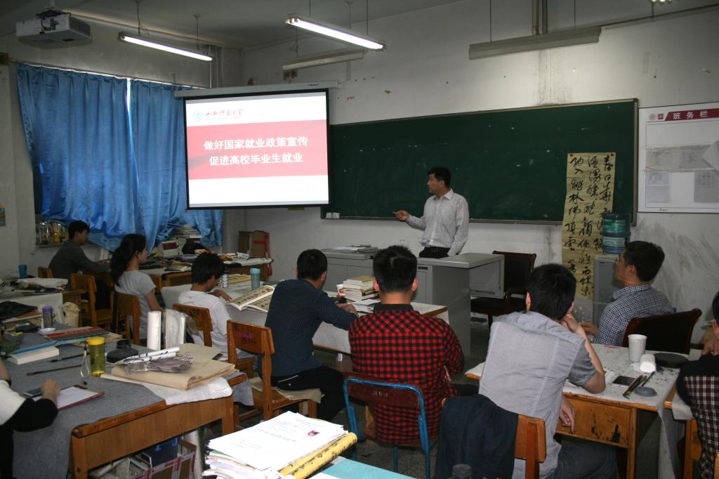邀请,校学生处多年从事毕业生就业工作的高兵老师为毕业生义务作了以《做好国家就业政策宣传促进高校毕业生就业》为题的报告。