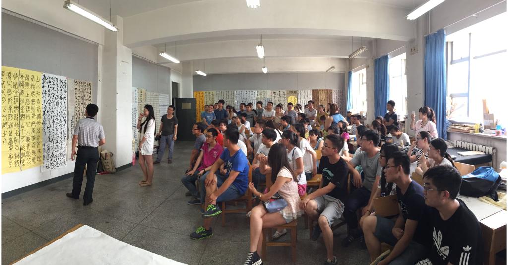 师生作了一场精彩的学术报告,并对百余名学生的临摹创作作品进行了逐一点评,报告和点评时间长达3个半小时。