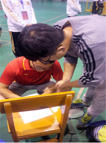 | 领队在安排队员入场名单 |