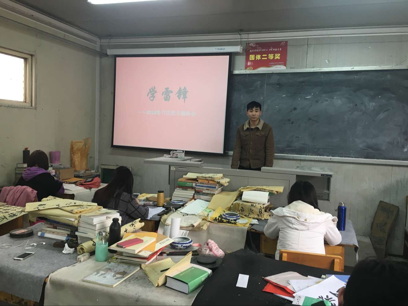 2013级在班长主持下举行了“学雷锋”主题班会,同学们在重温雷锋事迹的同时对雷锋精神的内涵和意义进行了学习和交流,在学习过程中体会到学习雷锋精神要从自己做起,从身边的小事做起,使其成为生活的一部分,成为自身良好品格的一部分;2014级开展了“学雷锋、树新风”讨论交流会,同学们就当前社会对雷锋精神的误解和分歧进行了讨论,对雷锋精神有了更加明确的理解;2015级团支部组织部分优秀学生到幼儿园进行义务书法教学并讲述雷锋事迹,给小朋友们留下了深刻的印象。