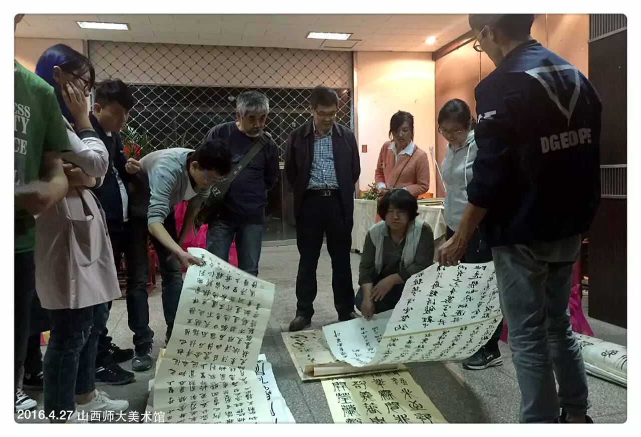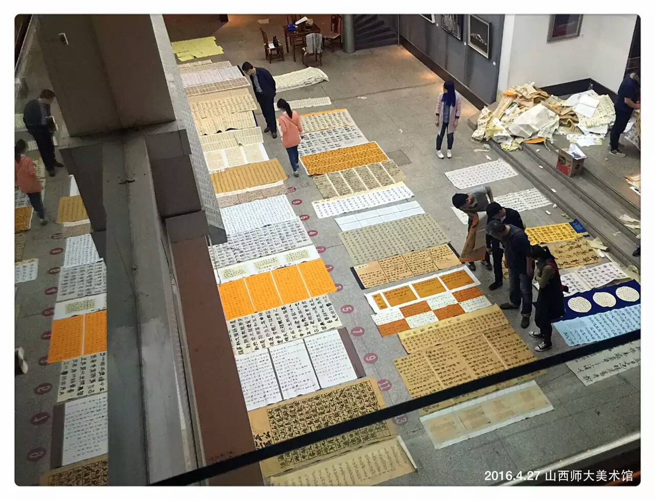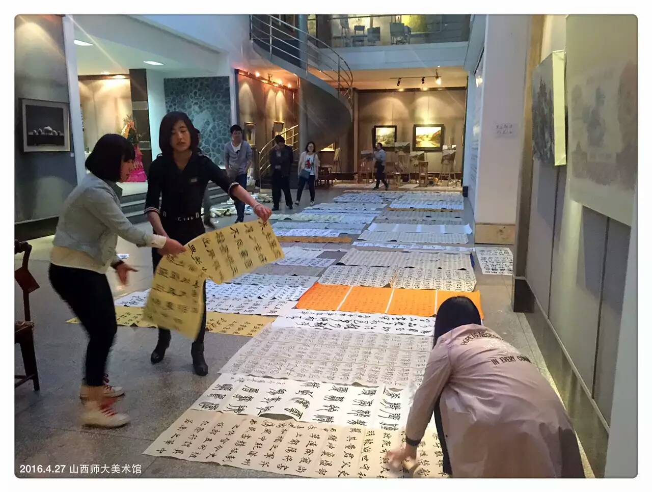4月27日晚,我院在山西师大美术馆对首届书法经典临摹竞赛作品来稿进行了评选。院长赵廷仁、党委副书记张忠民、副院长杨吉平及我院各专职教师作为此次大赛评审委员会成员参与了此次评选。首届书法经典临摹竞赛得到了我院学生及文理学院书法系学生的踊跃参与,共计收到行书、楷书、篆书及草书等各类书体临摹作品389件。
