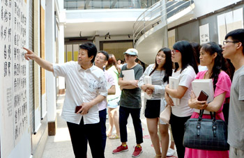 副院长杨吉平介绍了此次展览的组织、筹备情况,并对学校领导支持学院发展、支持学生竞赛项目、重视提升学生专业素养和师范技能深表感谢。他说,临摹书法经典是学习书法的重要途径,临摹水平决定着书法创作的水平和格调。山西师大书法专业一向秉承坚守传统书风、继承传统文化的教学理念,注重学生的专业技法学习和传统文化学习,在山西高等书法教育界处于领先位置,在全国高等书法教育界也广有影响。他表示,要以此次展览为契机,继续加强以课堂教学为突破口的教育教学改革,并通过展览、竞赛等多种形式加强学生对传统书法艺术的继承、研究和积淀,为创新发展夯实基础、积聚能量,为培养基础扎实、底蕴深厚、发展潜力较大的艺术人才做出积极努力。