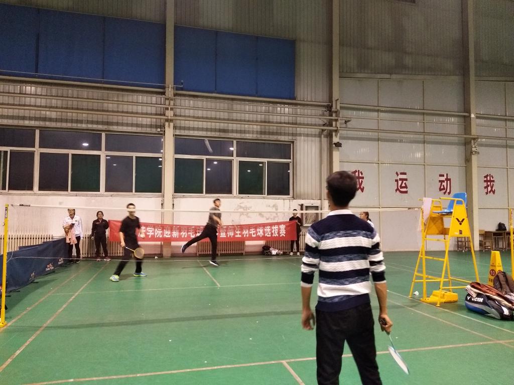 2017年11月1日,我院团委在学生活动中心举办2017年迎新羽毛球比赛暨师生羽毛球比赛选拔赛,同学们都摩拳擦掌,积极迎战,为参加我校师生羽毛球大赛做好准备。