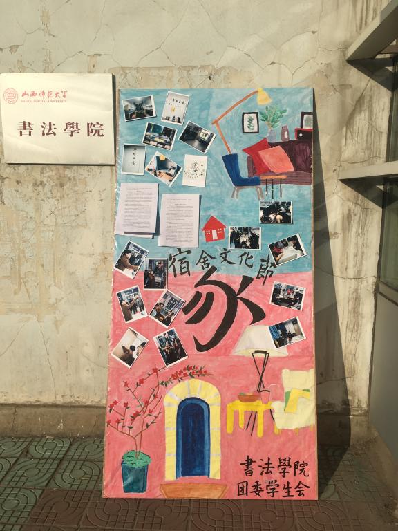 四是宿舍特色文化书法作品展示。各年级以宿舍为单位,以十九大精神、社会主义核心价值观、宿舍特色文化建设为主题内容进行书法作品创作,并评选出优秀作品在各宿舍悬挂,充分展示我院宿舍文化建设成果和学生风采。
