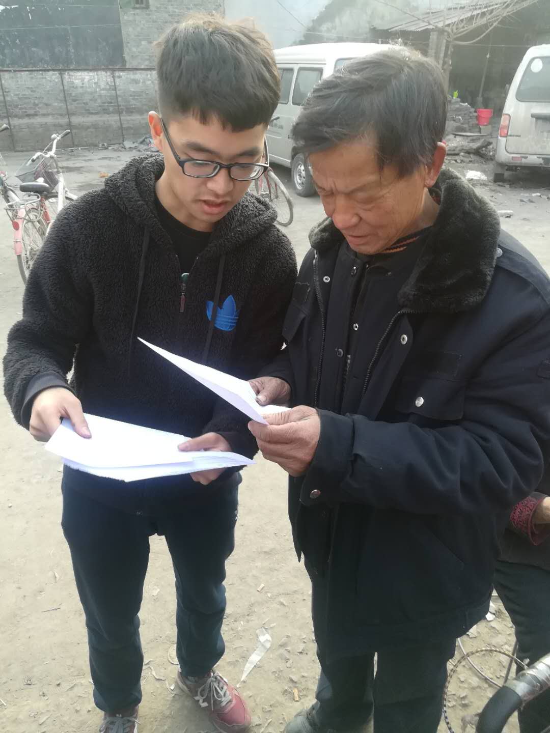 活动过程中,宣讲队队员们通过分发十九大知识宣传页向村民们介绍我国优秀传统文化——书法的发展史和十九大中对三农问题、乡村教育的重视,同时充分发挥专业特色,为村民们书写十九大主题春联,深入南辛店中学手把手教学,以生动的形式将十九大精神和传统文化魅力带到广大群众中间。