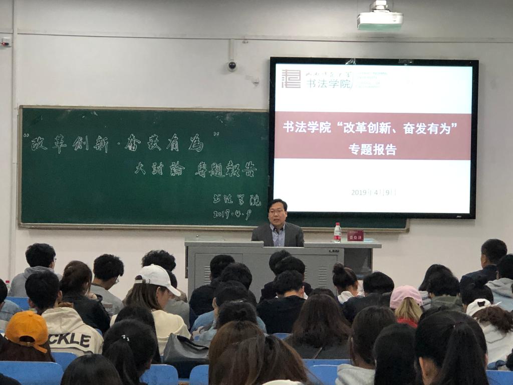 4月9日晚,我院邀请政法学院院长贾绘泽教授在10106教室做了“改革创新,奋发有为”大讨论专题讲座。讲座由我院党委书记许国宝主持,全体师生认真听取了讲座。
