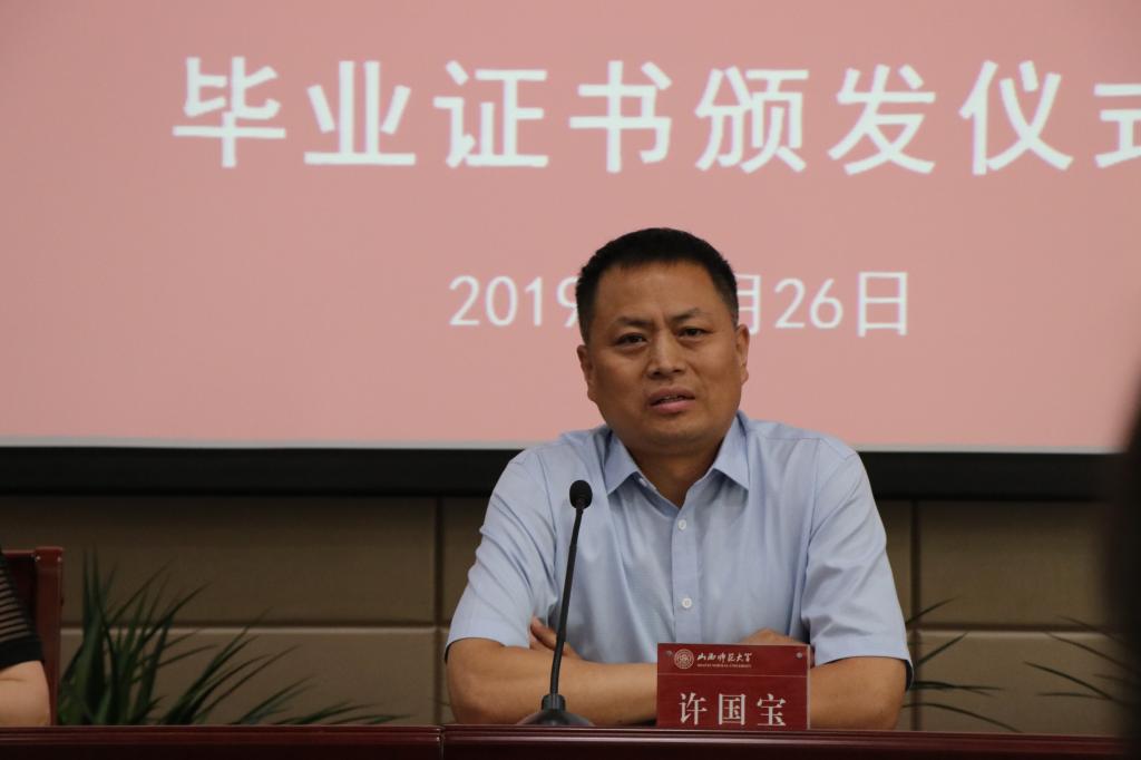 毕业生名单和2019届校级优秀毕业生名单。院党委书记许国宝为校级优秀毕业生颁发了荣誉证书,并和学院其他领导一起为全体毕业生颁发了毕业证书。