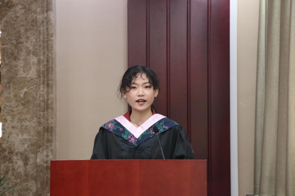 随后,优秀毕业生桑婷同学上台发言,她代表全体毕业生向所有领导和老师表达了衷心的感谢,深情回忆了大学四年的点点滴滴,祝愿师大和蜜桃堂
