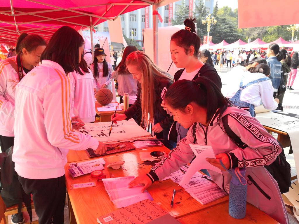 为吸引更多爱好书法的大学生加入社团,壮大社团队伍,10月19-20日,我院书法爱好者协会在巨人广场开展了社团纳新活动。