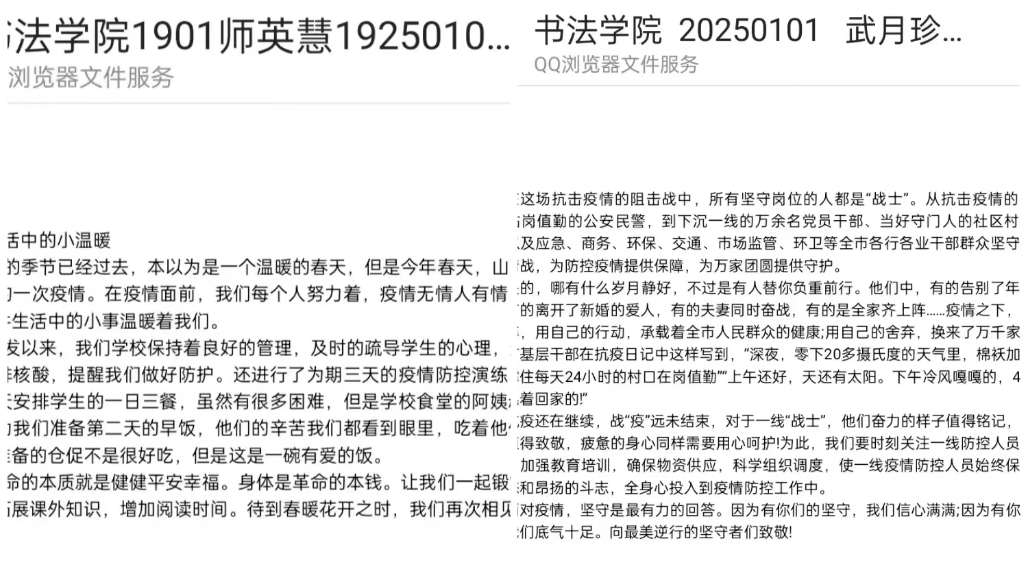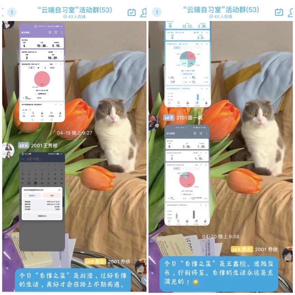 在“云录制—云端故事视频征集”活动中,同学们通过自己拍摄的短片积极宣传防疫知识,坚定抗疫信心,表达自己对抗疫工作人员的感恩;在“与经典同行”诵读活动中,同学们认真阅读党史经典书籍和名人名著,在微博打卡并分享读书心得体会;在“云端自习室”活动中,通过组织学生开展线上自习时间打卡,在保证学生学习时间的同时也提高了大家的自律能力;在云端故事征集活动中,同学们自创短文、诗歌、散文等作品,用自己手中的笔记录着疫情发生以来身边发生的故事和看到的暖心瞬间;在云端观影活动中,近百名同学共同观看《中国医生》、《穿越寒冬拥抱你》、《一呼百应》等感人影片,使这次观影活动显得特殊而温暖。