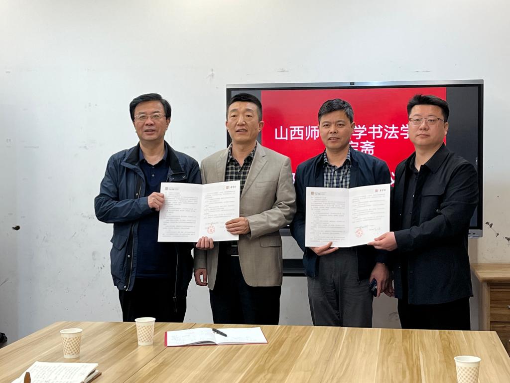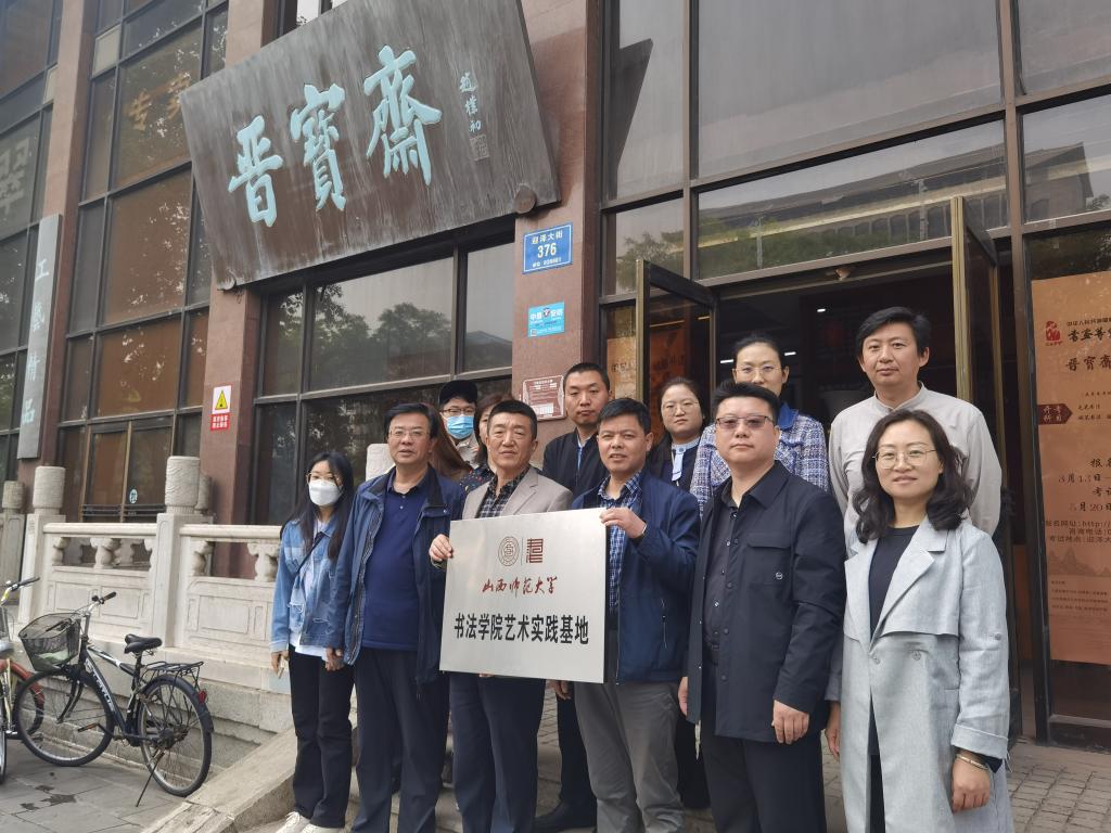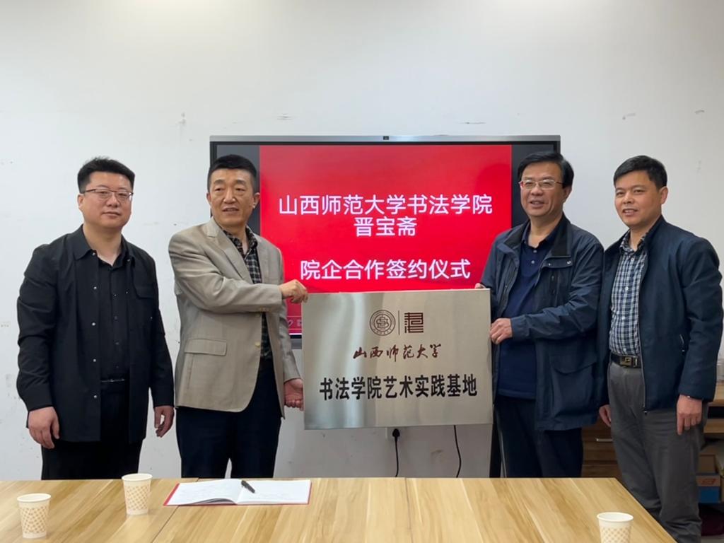 洽谈结束后,我院与晋宝斋签订了院企合作框架协议书,举行了学院艺术实践基地挂牌仪式。