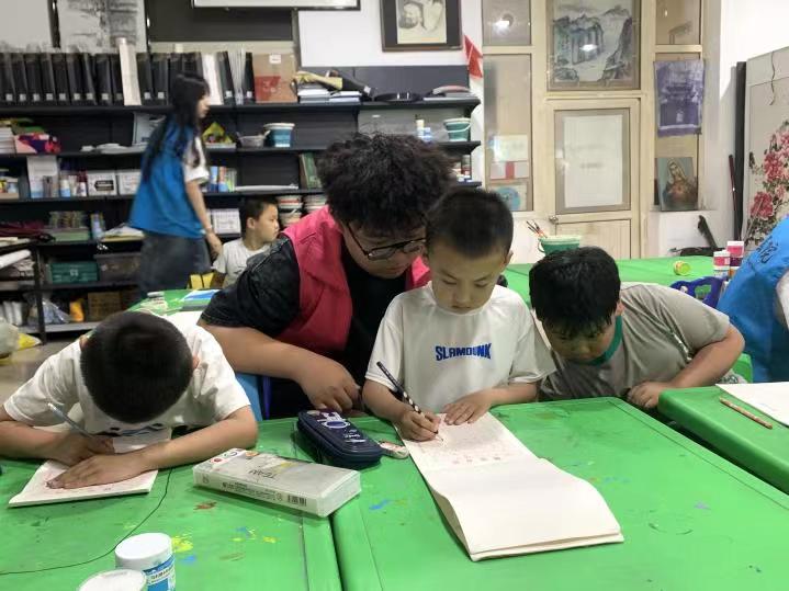 图为志愿者们一对一辅导孩子们写字。志愿者武晓雅摄。