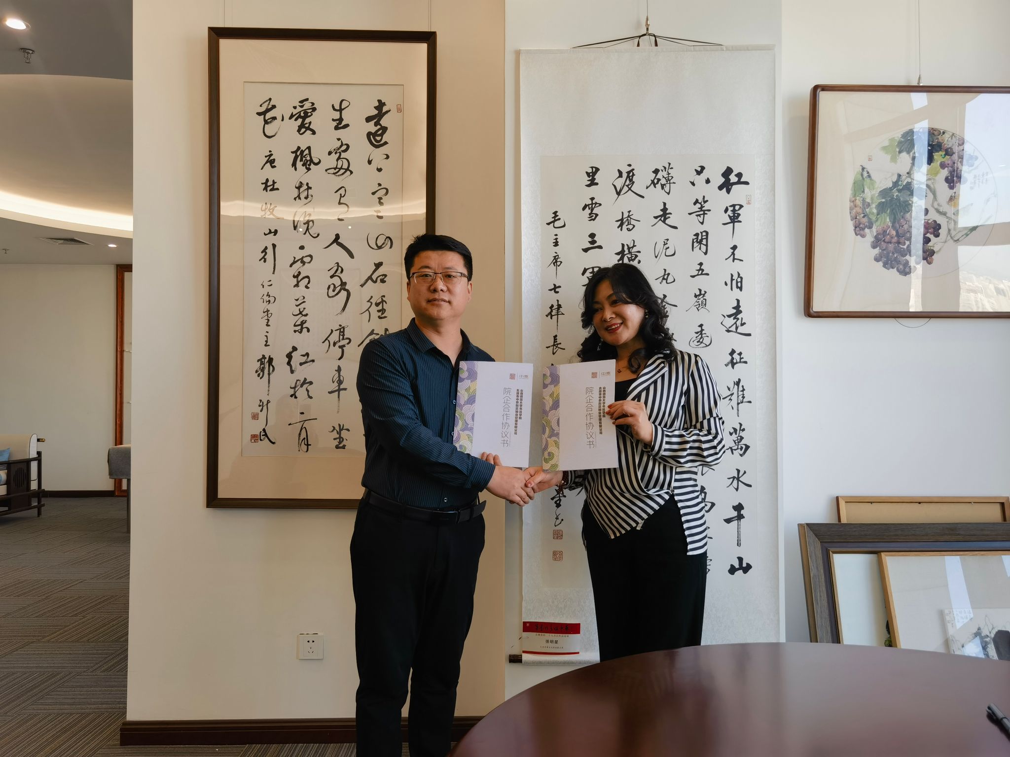 是省内书法教育的重要阵地,此次合作意义重大,将有利助推书法学专业学生实习就业,提高书法人才培养质量,希望双方精诚合作,互利共赢,早日结出丰硕成果。