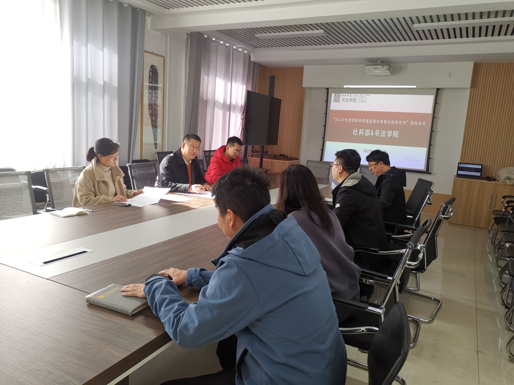 2024年度国家社科基金项目申报推进会暨“2024年度国家社科基金申报目标责任书”签约仪式在我院会议室举行,我校社科部王彤部长一行莅临指导。会议由副院长(主持行政工作)曹亚彬主持。