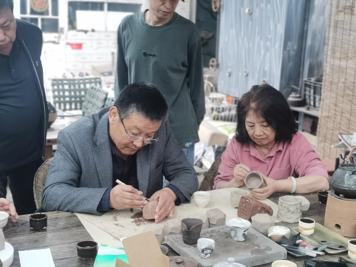 院长曹亚彬、办公室主任王文清的陪同下,与晋阳印社社长阴凤华老师等人在交城陶瓷基地进行了陶瓷印创作交流。