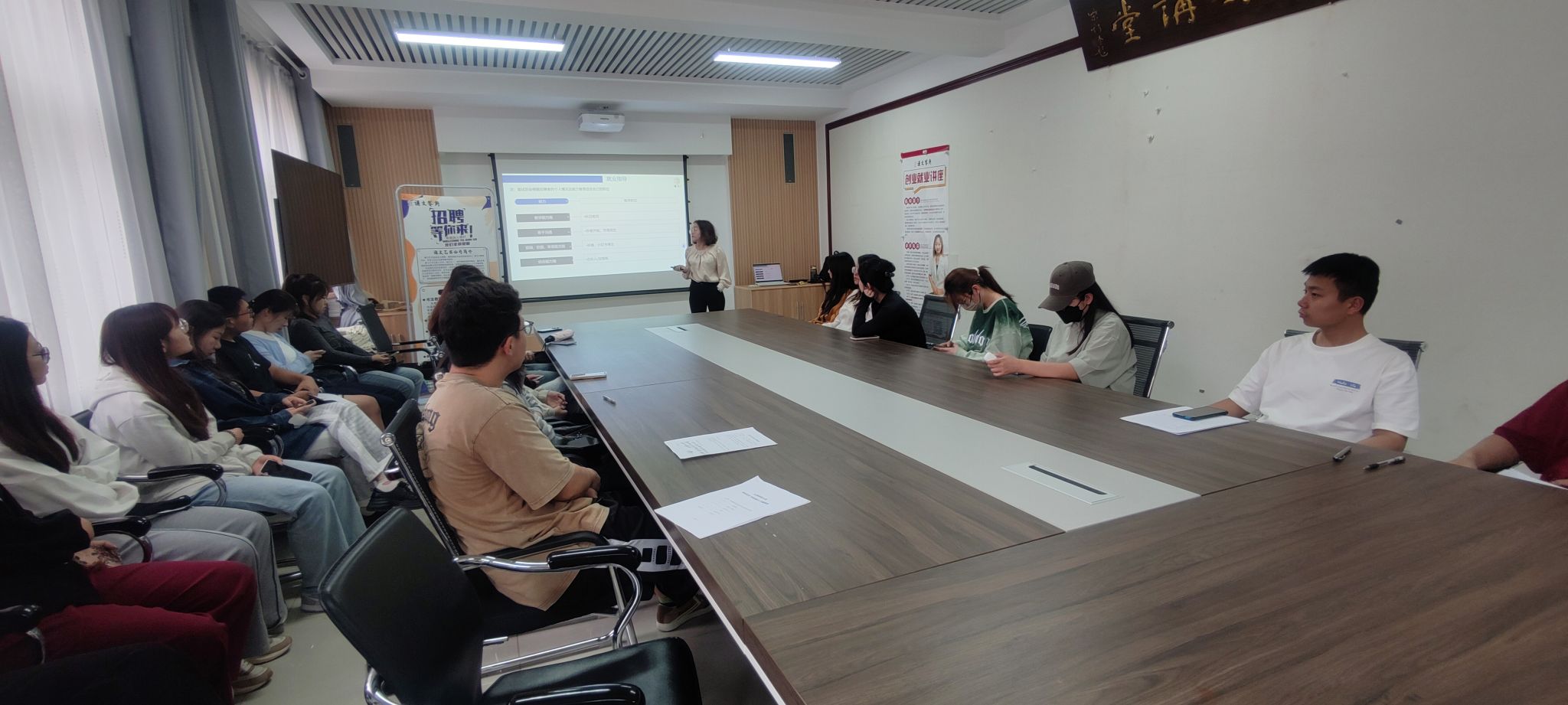 在8301会议室举办了谦文艺术培训学校专场招聘会。招聘会由谦文艺术培训学校校长乔宇丹主讲,学院2024届全体毕业生参加。