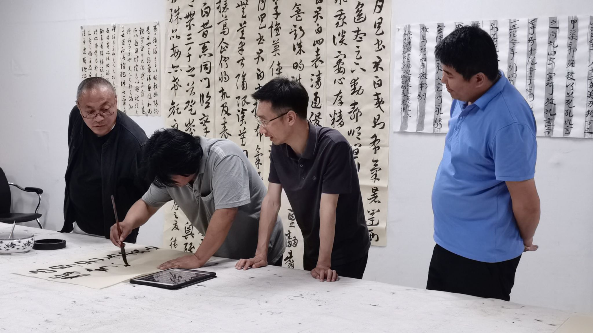 点评结束后,老师们现场临摹了索靖《月仪帖》,相互观摩了不同的临摹方法和书写状态,并对笔法、结构、线条以及整体气韵进行对比赏析。活动最后,专业教师们纷纷表示通过对经典书法作品的临摹,加深了对古人书法作品的研习,提升了对作品精神内涵的理解,对提高个人书写技法有很大的促进。只有重温书法经典、品味大师精神,才能从根本上解决书法技法上的瓶颈问题,才能更好地反哺于书法教育教学工作。