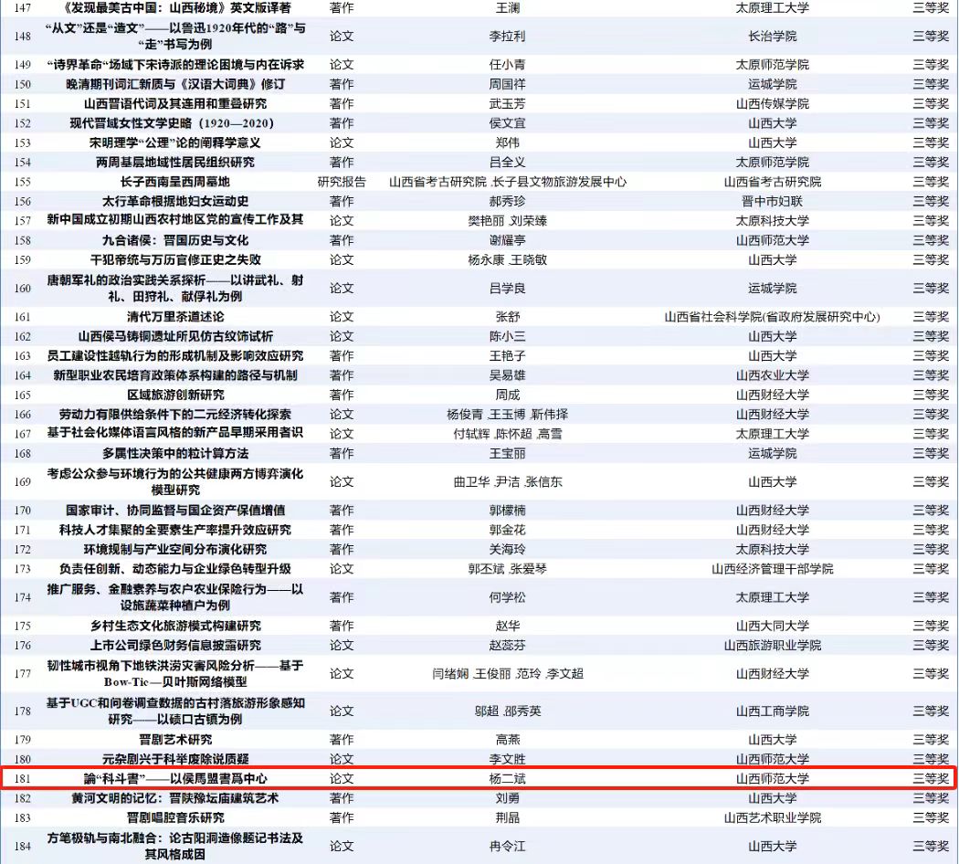 近日,我院科研工作喜报频传、再获佳绩!杨二斌教授的《论“科斗书”——以侯马盟书为中心》一文获山西省第十三次社会科学研究优秀成果三等奖;阴胜国老师的《法国汉学家弗朗索瓦·朱利安对中国山水画论的阐释研究》获批2024年度教育部人文社会科学研究一般项目;周柳伊老师及其科研团队的《艺术概论》成功立项2024年校级普通本科教育课程思政示范课。