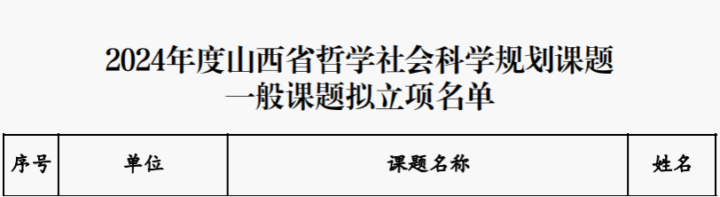 近日,山西省哲学社会科学规划办公室公布了2024年度山西省哲学社会科学规划课题一般课题的立项名单,蜜桃堂 共获批立项课题15个。其中,我院院长曹亚彬、专业教师阴胜国两位老师的课题成功获批立项。