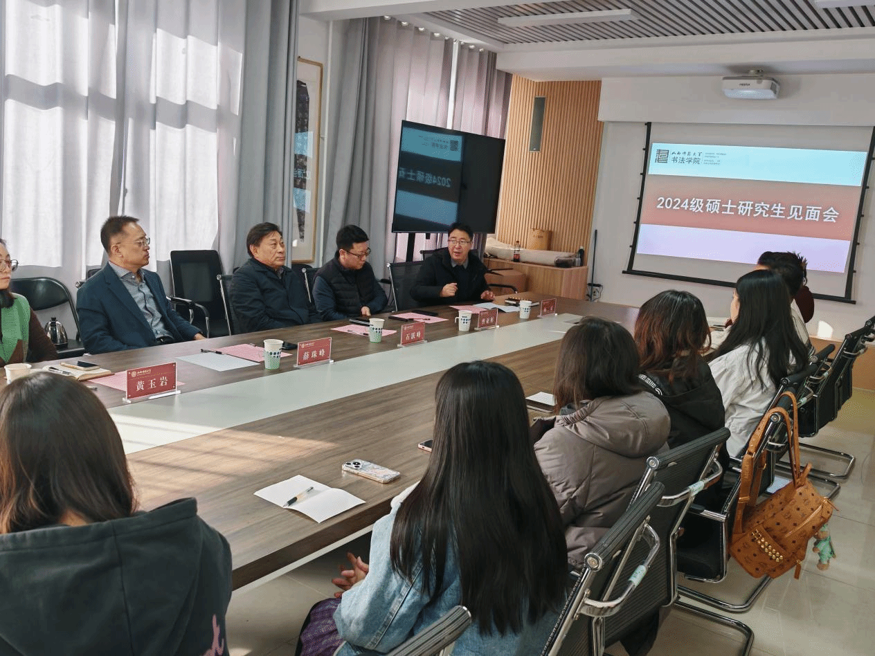 院长曹亚彬、副院长杨二斌、副院长黄玉岩以及2024级全体硕士研究生参加了此次见面会。同时我院还诚挚邀请到了山西省书法家协会主席石跃峰、晋中学院党委副书记薛珠峰参与此次见面会。会议由蜜桃堂