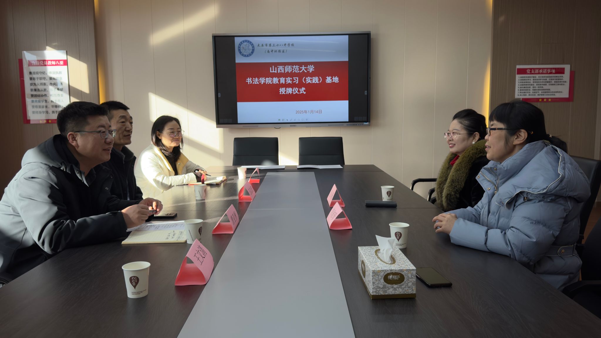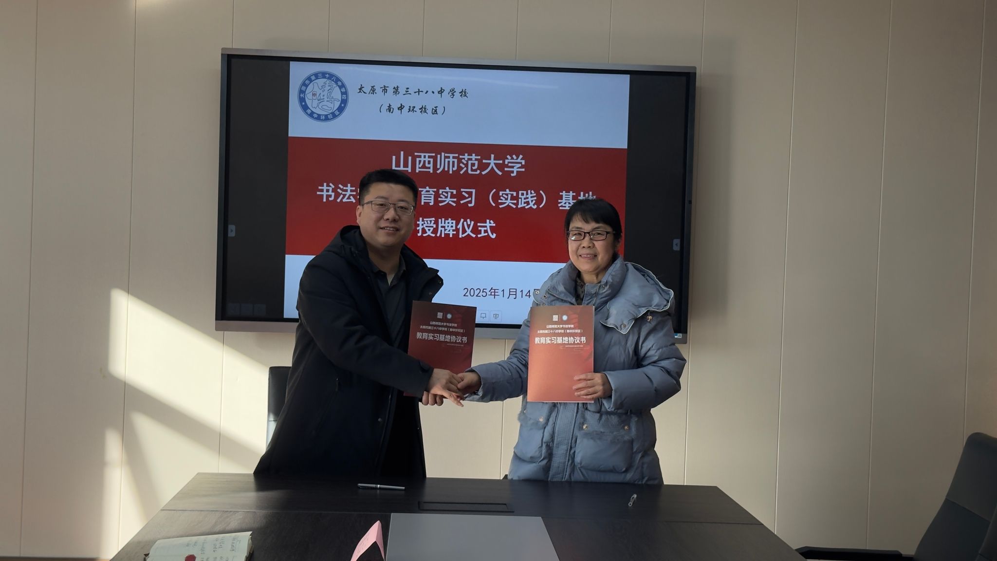 党总支书记王志宏、院长曹亚彬、副院长黄玉岩、办公室主任王文清一行四人前往太原市第三十八中学(南中环校区)举行了教育实习(实践)基地签约授牌仪式。太原市第三十八中学(南中环校区)校长韩淑珍、副校长赵小燕出席仪式。