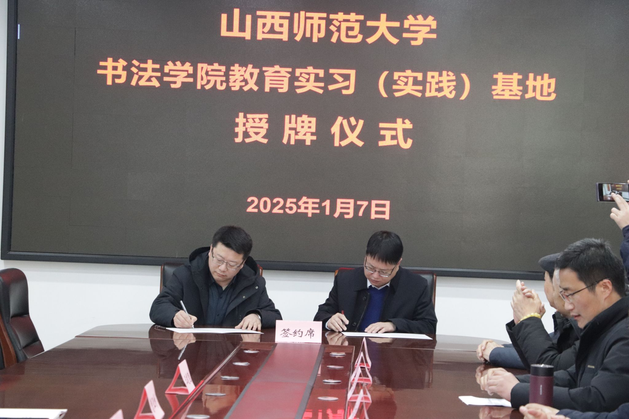 党总支书记王志宏、院长曹亚彬一行五人前往新绛县第二中学举行了教育实习(实践)基地签约授牌仪式。新绛县教育体育局党组书记、局长王红森出席仪式,山西省青年书法家协会、新绛县书法协会前来参加仪式并开展书写春联活动。