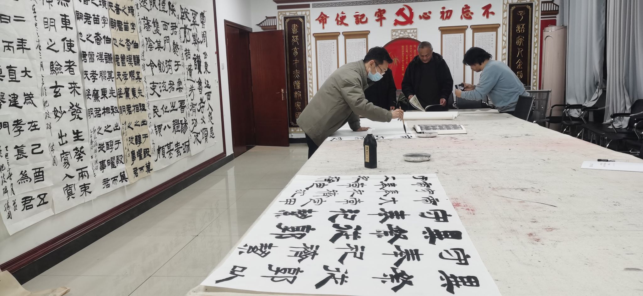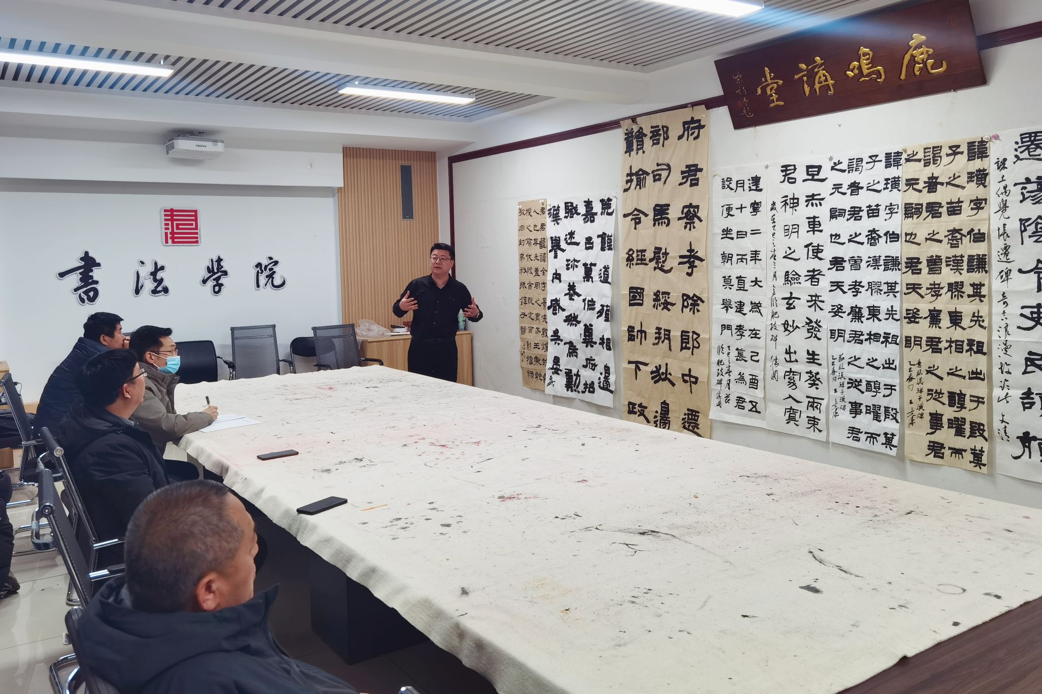 院长曹亚彬、副院长杨二斌及专业教师齐聚一堂,共同探讨书法艺术。