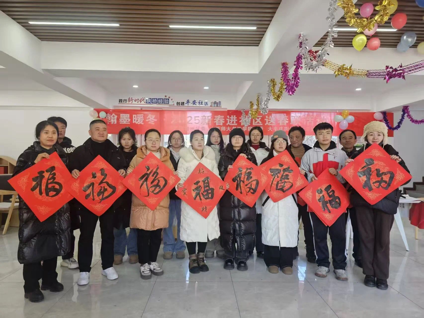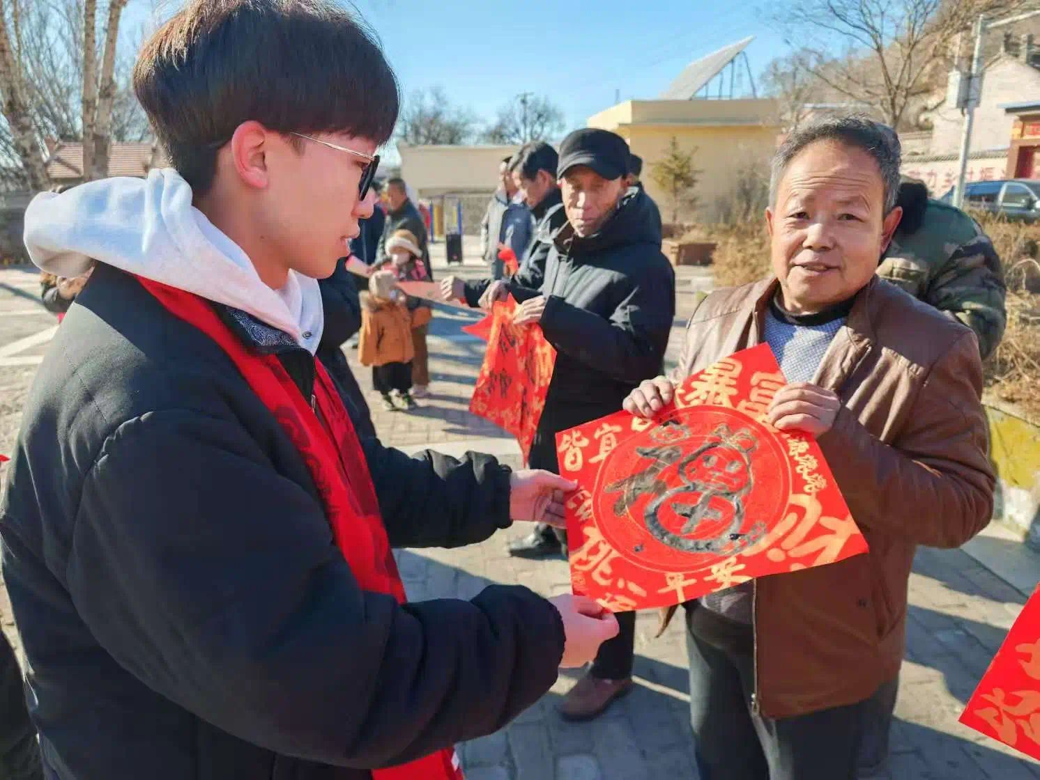 书写结束后,书法学子们将写好的春联和福字赠送给群众,并送上新春的祝福。群众手捧散发着墨香的春联和福字,脸上洋溢着幸福的笑容,纷纷表示这样的活动很有意义,不仅让他们感受到了浓浓的年味,也让他们感受到了中华优秀传统文化的温暖和力量。活动现场,学子们还与群众进行了互动交流,向他们讲解书法知识,传授书写技巧,并鼓励他们学习书法,感受书法文化的魅力。