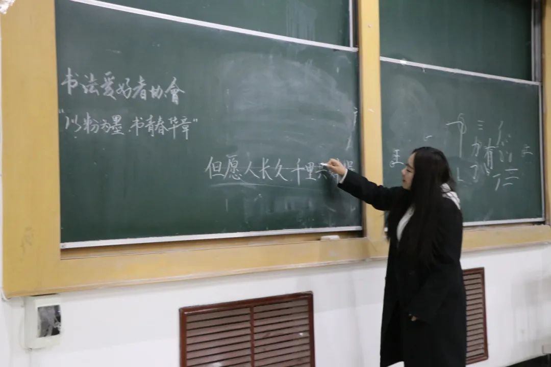 【翰墨青春】书法爱好者协会举办“以粉为墨,书青春华章”粉笔字教学活动