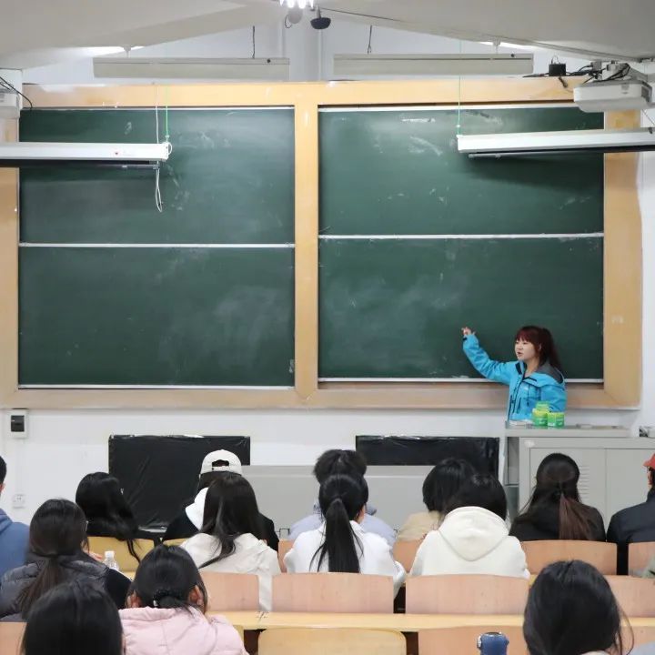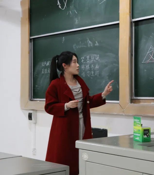 活动分为讲解,实践与总结三个环节。在讲解环节,协会成员系统讲解了粉笔字执笔姿势、运笔技巧及结构布局要点,并通过现场示范展示粉笔字书写技法。实践环节中,学生依次上台书写指定内容,协会成员全程跟进,针对运笔、字形等问题进行逐一修改与指导。随后,协会成员结合学生作品,从规范性、美观性等维度进行集中点评与总结,深化了学生对粉笔字书写要领的理解。
