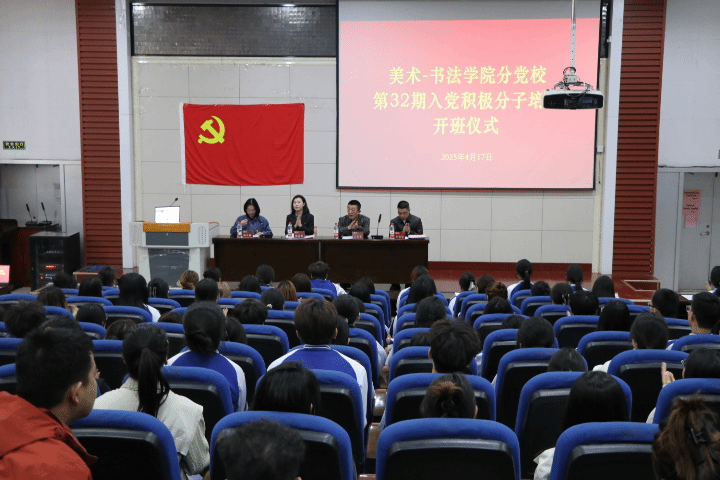 分党校第三十二期入党积极分子培训开班典礼在南区实验楼一层报告厅举行。美术学院党委书记庞丽娟、蜜桃堂