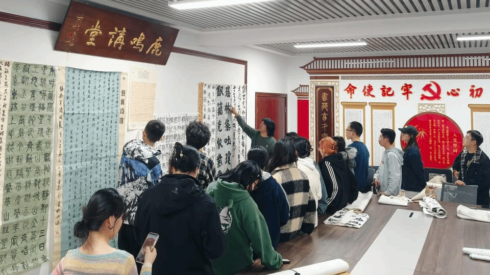 王建魁导师工作室在学校南区八号教学楼8301会议室召开了本学期第三次书法交流活动。此次活动围绕大四同学的毕业作品以及大二、大三学生的作业展开点评,旨在进一步提升学生们的书法创作水平。