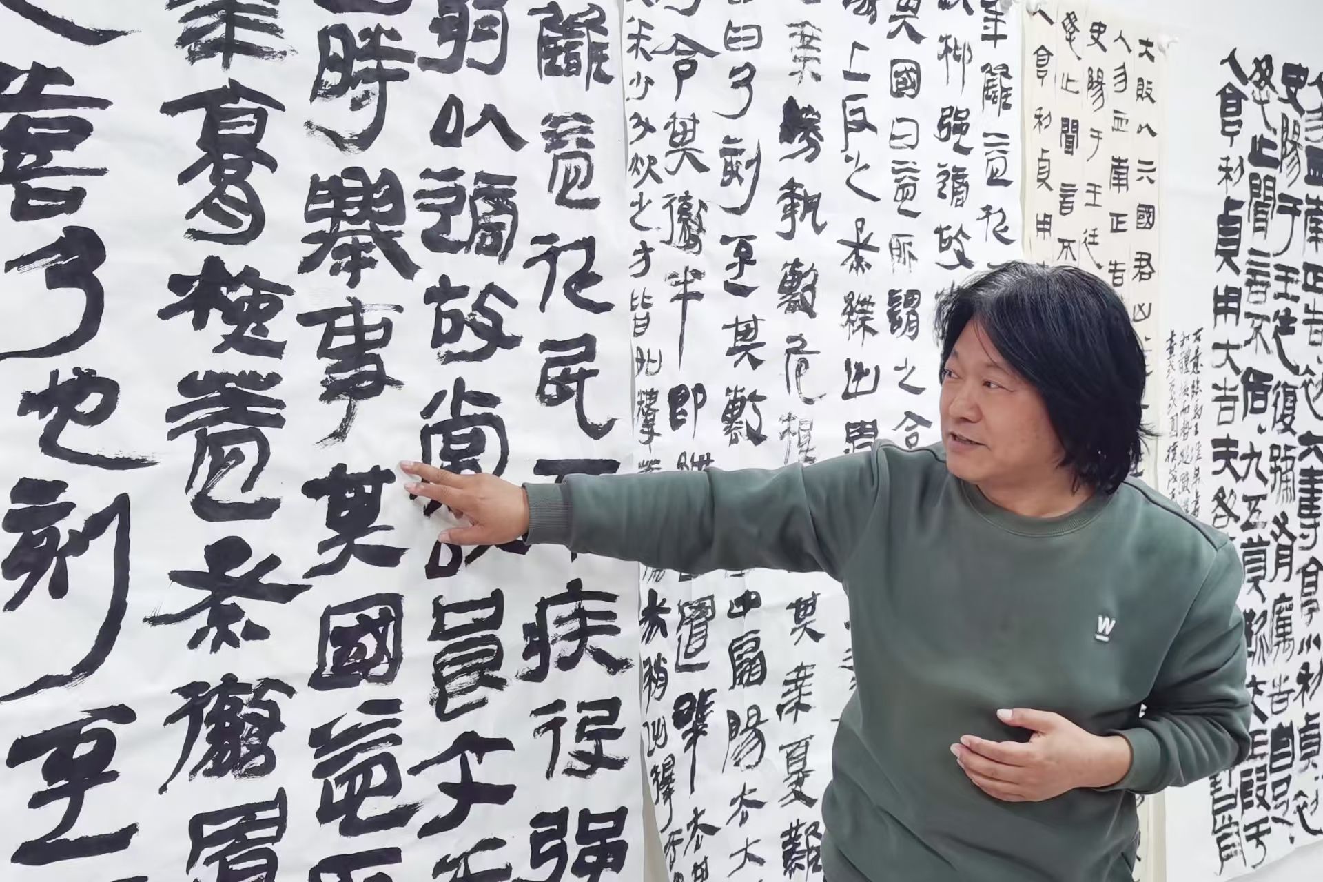 活动伊始,各位专业老师围绕简牍帛书的书写要领和临摹心得展开了深入交流。随后,老师们纷纷展示自己的演绎作品,现场氛围热烈。