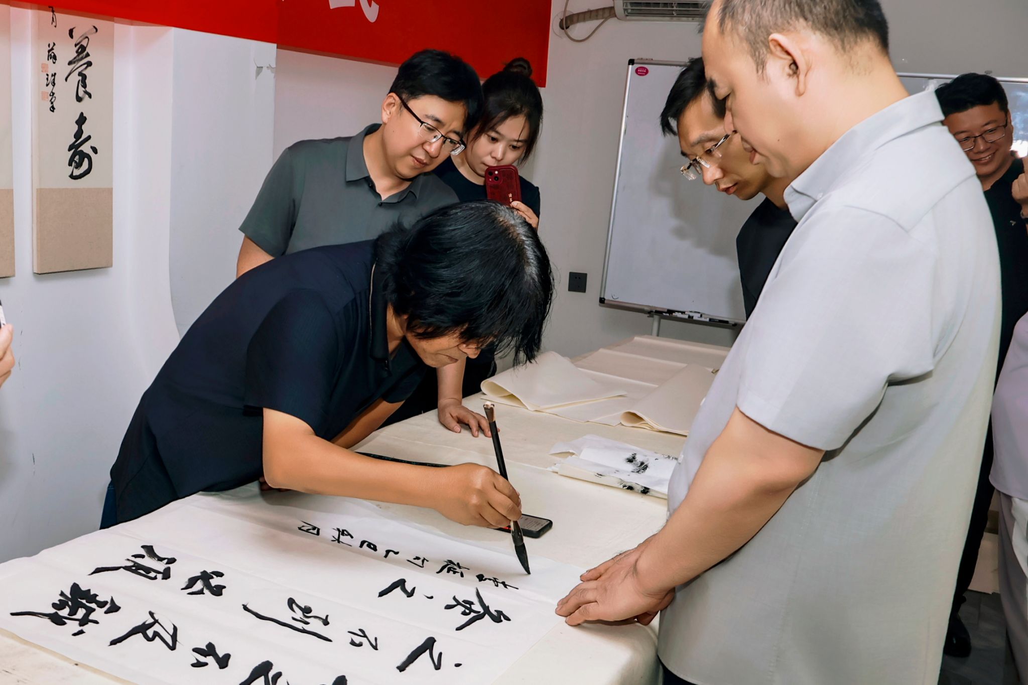 一行的到来表示热烈欢迎。他详细介绍了谷之和健康管理有限公司的发展历程、经营现状与企业核心文化,强调公司始终秉持“以人为本、健康为先”的服务理念,致力于推广中医养生与健康管理的先进方式。他特别指出,书法艺术与中医文化虽属不同领域,却共同植根于中国古典哲学的深厚土壤。他从中医的“阴阳辩证”思想谈到书法中的“阴阳相生”美学,从医学所讲的“气血”延伸至书法所重的“气韵”表达,阐明二者皆以平衡、和谐为核心,是中华优秀传统文化精神的重要载体。他表示,在新时代坚定文化自信的背景下,整合与弘扬这些传统资源,不仅是对历史的尊重,更是面向未来的创新。