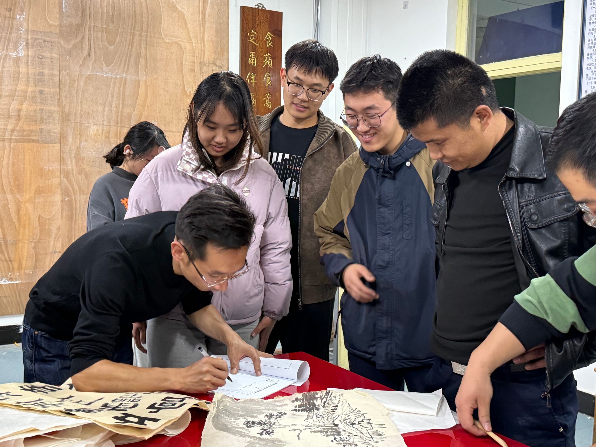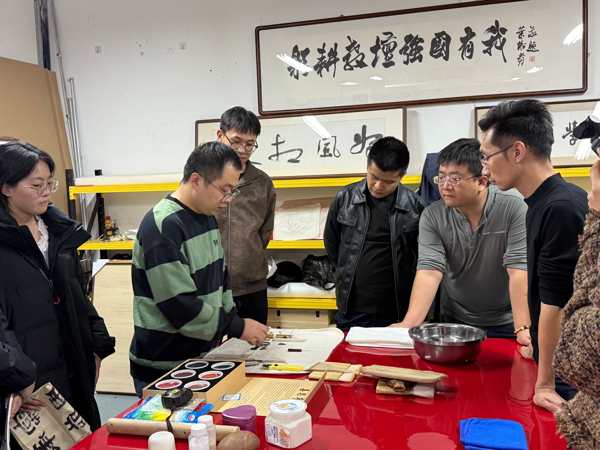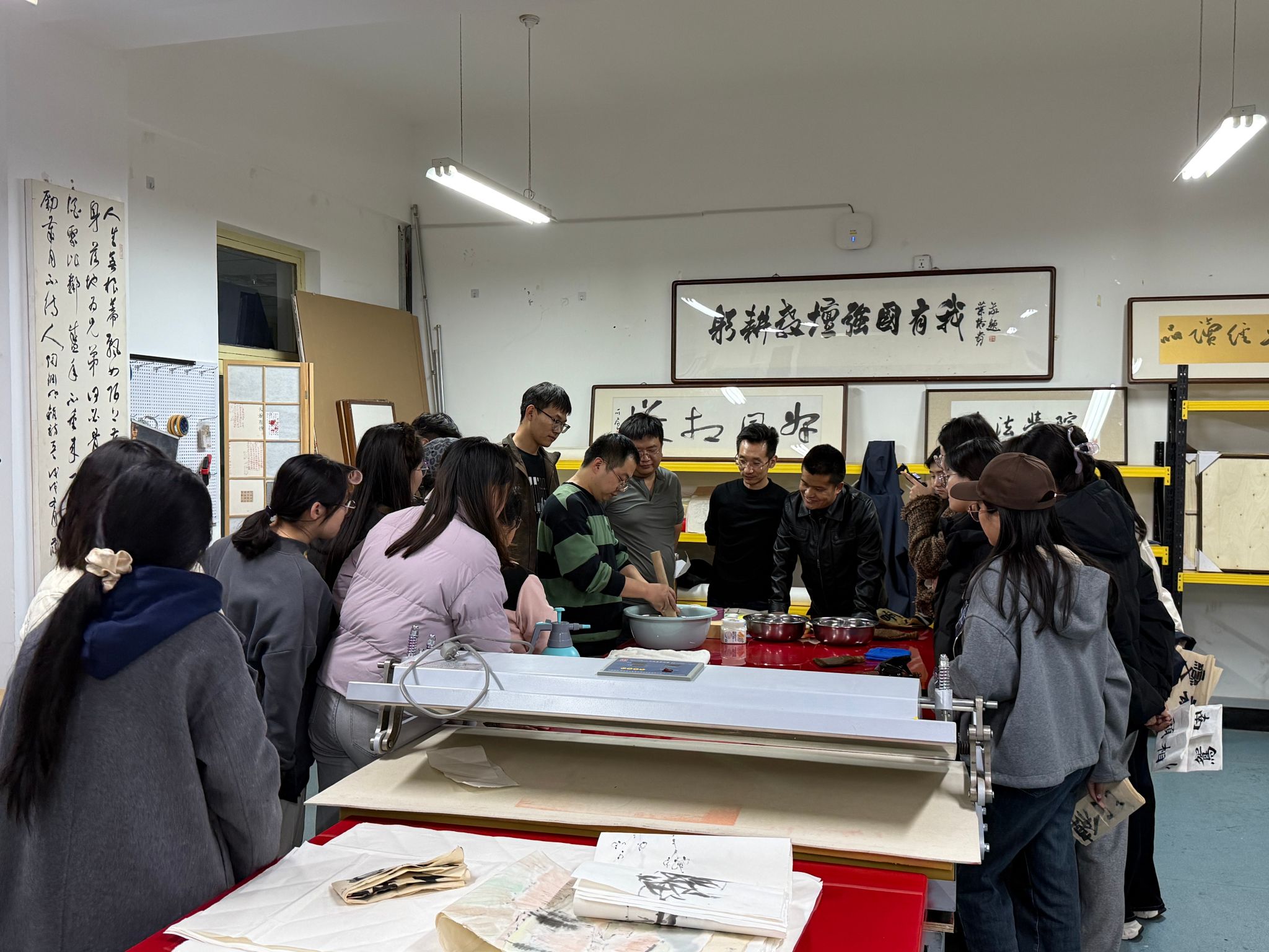学生精心呈现了一堂生动且极具实践价值的传统书画装裱教学实践课。王文清、程龙两位老师以及20余名学生参加了此次活动。