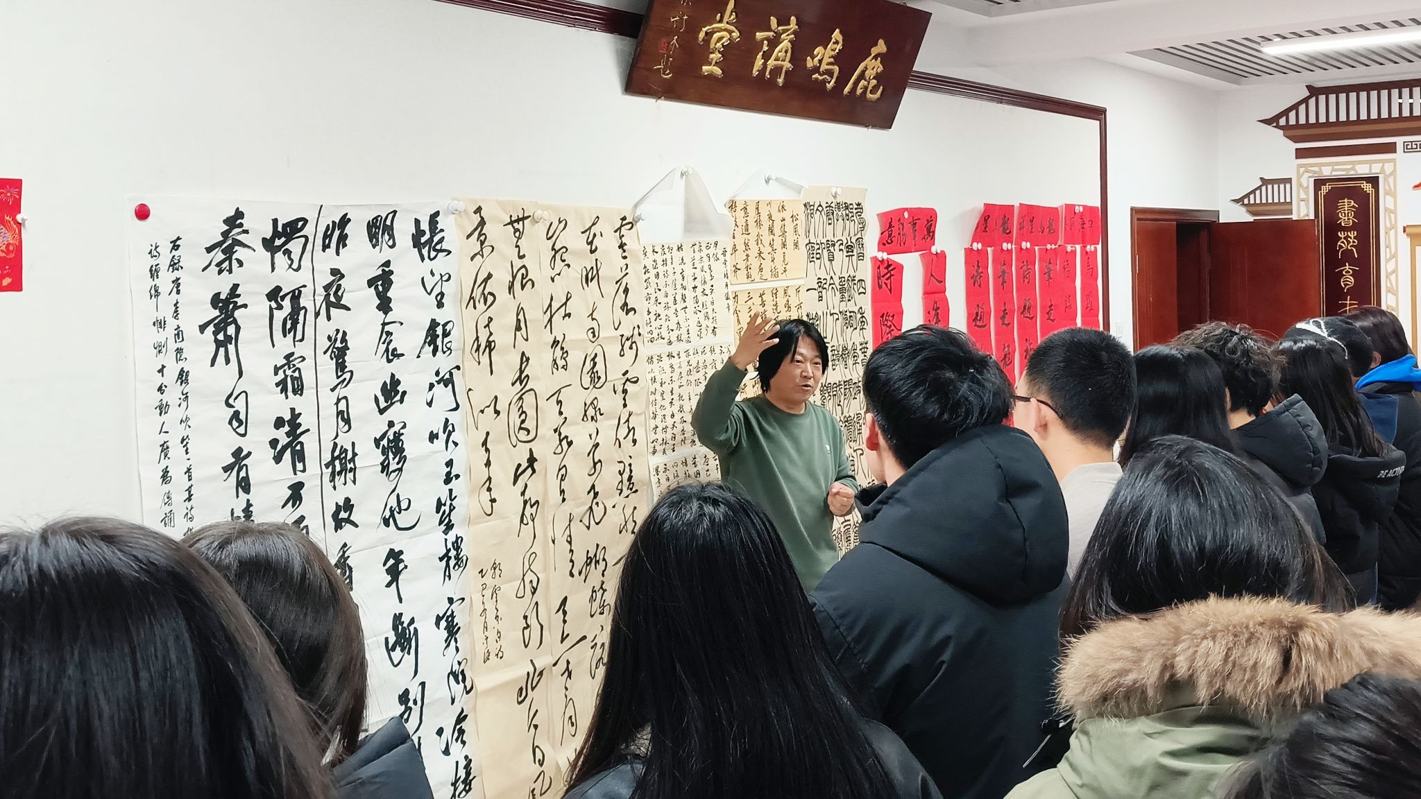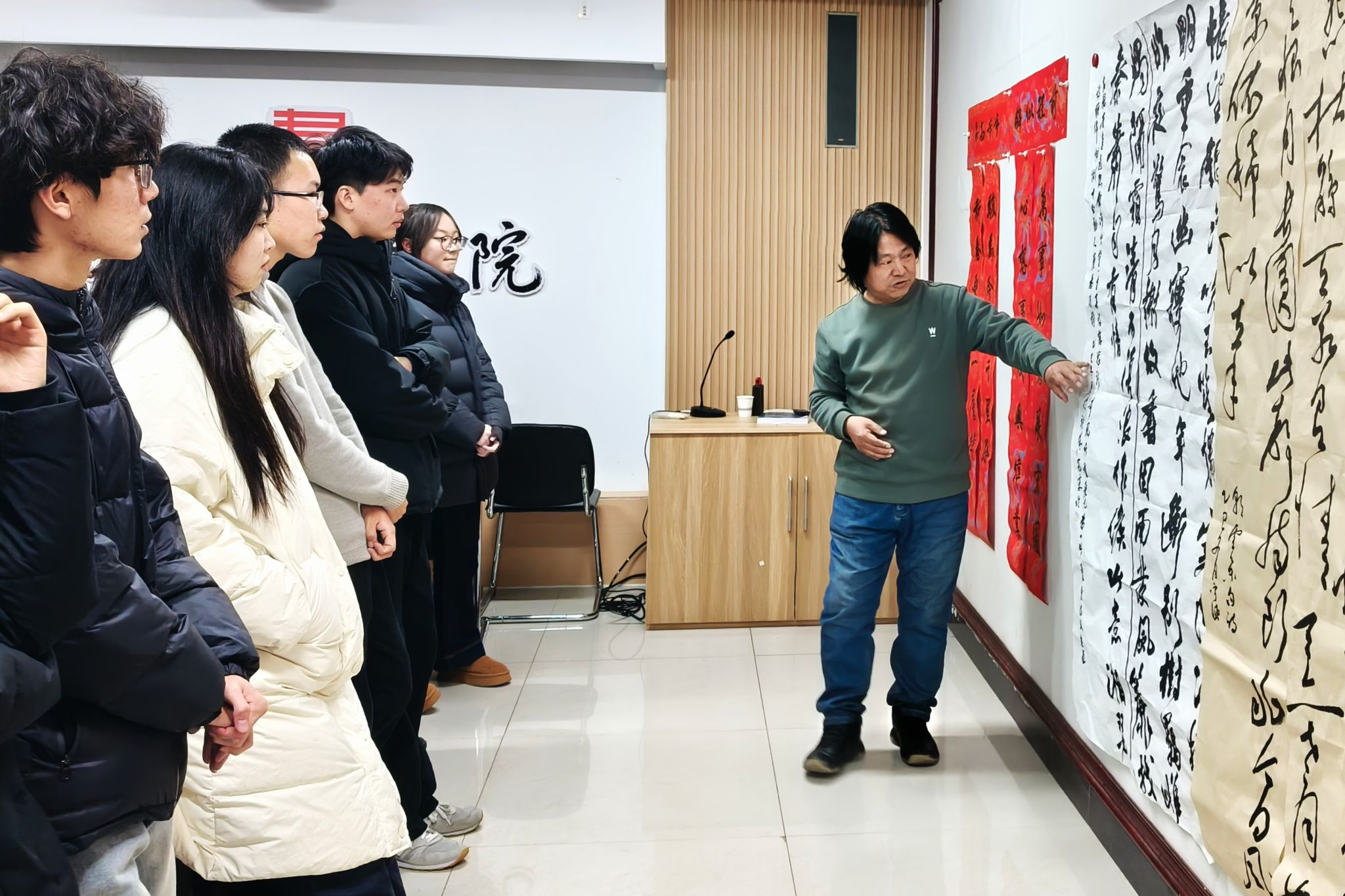 2025年12月11日晚,蜜桃堂 王建魁导师工作室在学校南区八号教学楼8301会议室召开了本学期第五次书法交流活动。本次导师会交流活动主题为楹联、临摹与创作点评。