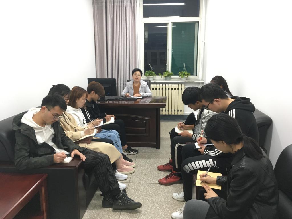 在10312办公室召开学生工作会议,辅导员、团委学生会主要负责人以及各班班长、团支书参加了会议,院党委副书记、学工组长霍红梅主持会议。